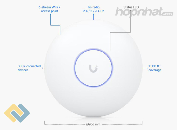 UniFi U7-Pro cung cấp vùng phủ sóng lên tới 140 m² (1,500 ft²) và khả năng hỗ trợ hơn 300 thiết bị khách đồng thời, làm cho nó trở thành giải pháp lý tưởng cho các văn phòng quy mô lớn, khu vực công cộng, trung tâm thương mại.